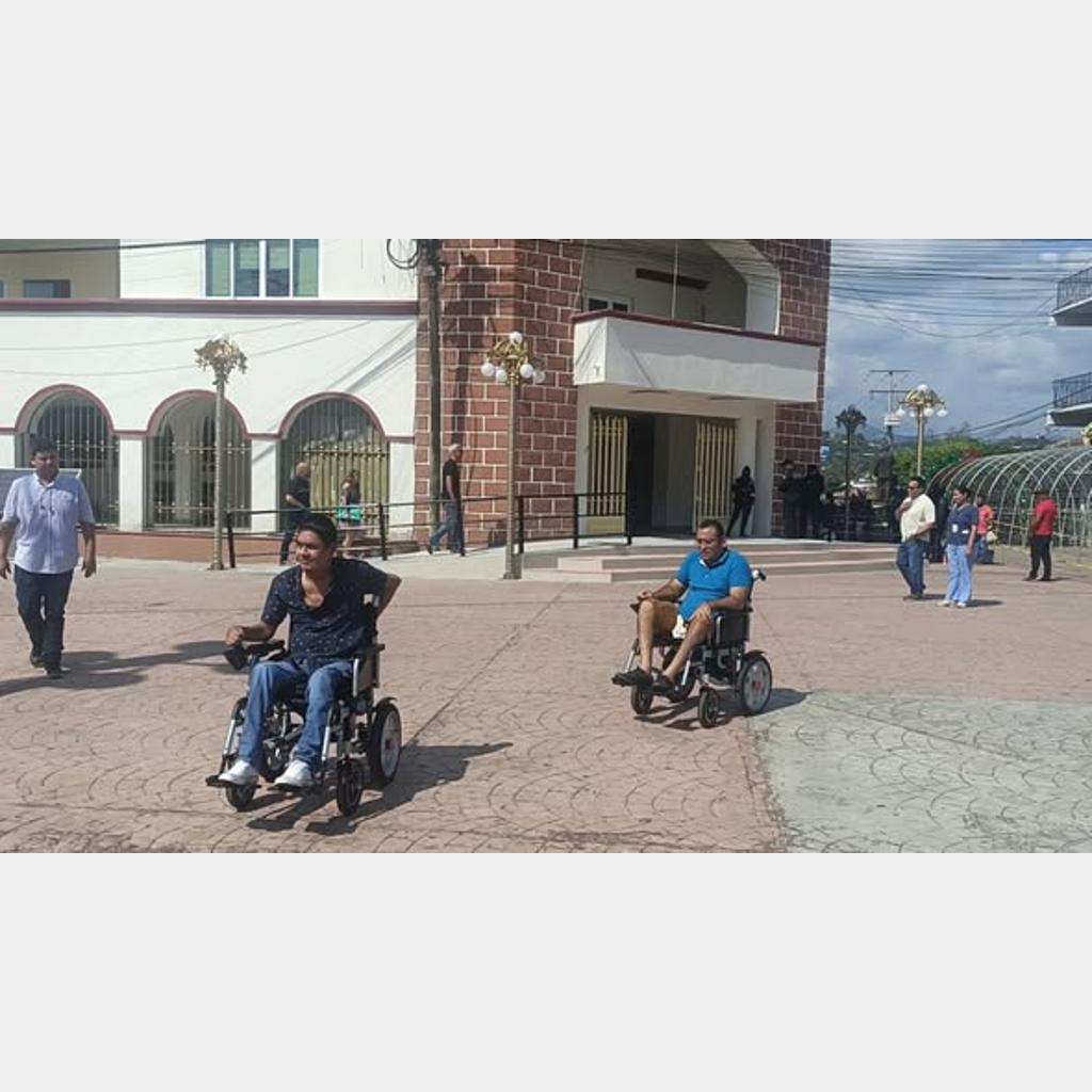 Durante el acto conmemorativo, el presidente municipal Rigoberto Chacón entregó dos modernas sillas de ruedas eléctricas, una al propio director del área y otra a Rubén Cariño Hernández, auxiliar del ayuntamiento. De inmediato ambos realizaron un recorrido de prueba por las rampas recién habilitadas.