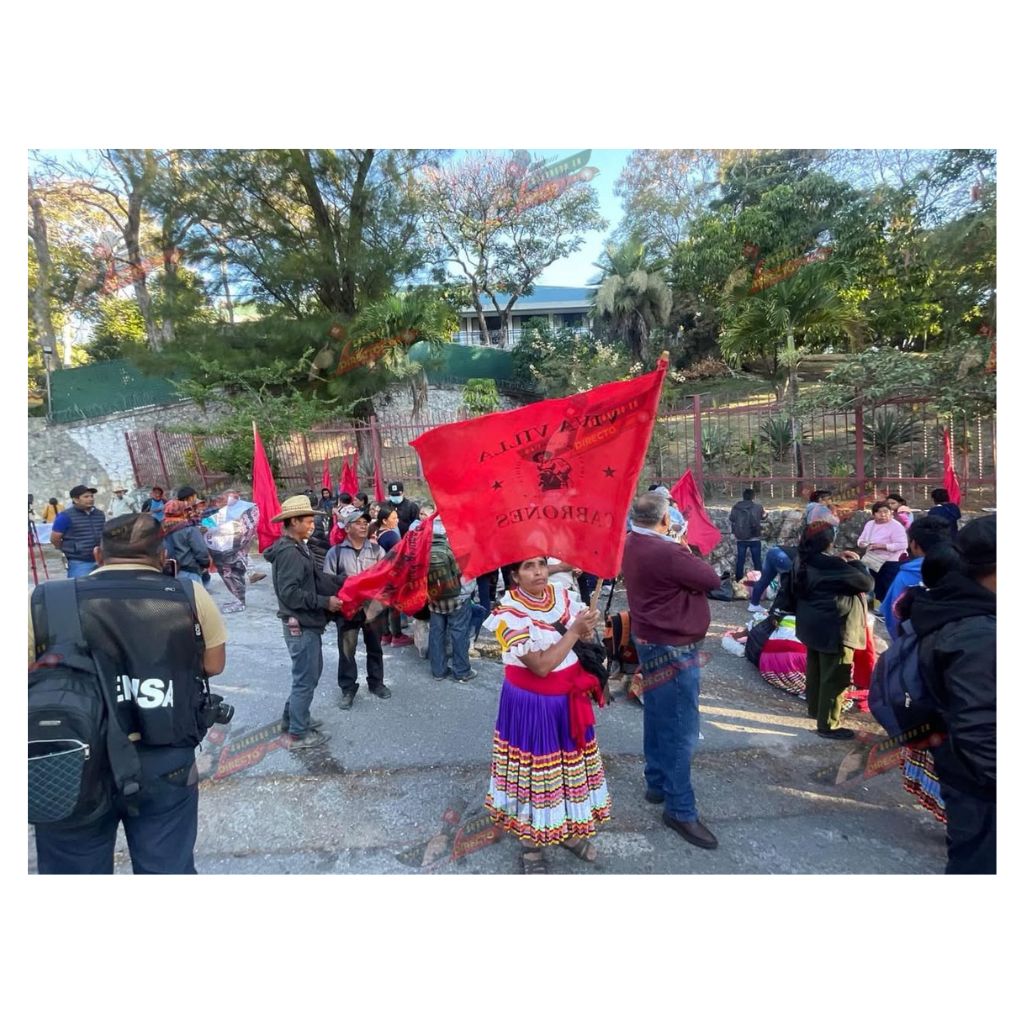 Obras básicas, seguridad y reconocimiento jurídico de comunidades fueron el eje central de la protesta realizada este lunes por integrantes del Frente Popular de la Montaña Francisco Villa, quienes se concentraron desde temprana hora afuera de Casa Guerrero, sin bloquear la vialidad.